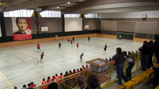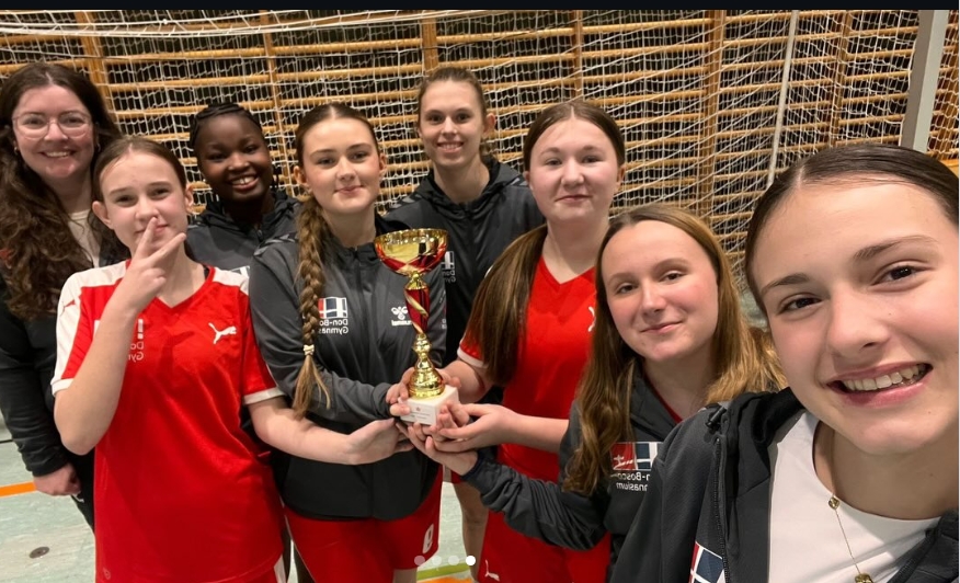 Optimal lief die Veranstaltung für die Mädchenmannschaft von Frau Brechmann: In der Vorrunde belegte das Team mit drei Siegen, einem Unentschieden und einem Torverhältnis von 9:1 Platz 1 - und das gegen teils deutlich ältere Gegnerinnen. In der KO-Runde wurde taktisch umgestellt; es folgten ein 4:0 im Halbfinale und - unter Anfeuerungen der begeisterten Gastgeber - ein 3:0-Finalsieg.