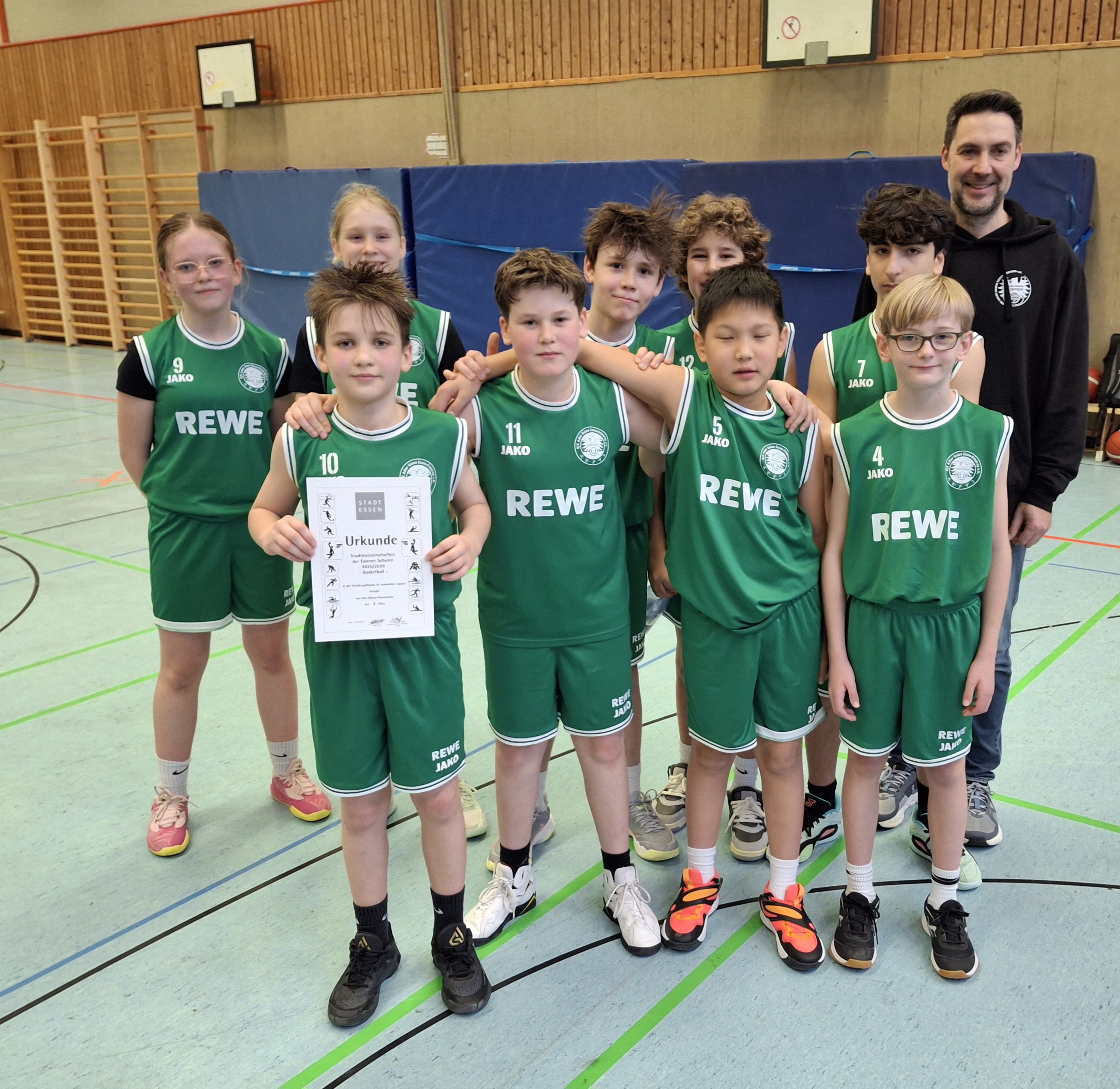 Das DBG-Team mit ausschließlich Vereinsspielern von DJK Adler-Frintrop wurde vom Ehemaligen, Schülervater und zugleich Vereinstrainer René Naglatzki gecoacht. Damit setzt das Don-Bosco-Gymnasium die mittlerweile drei Jahrzehnte andauernde Kooperation mit der Basketballabteilung von DJK Adler-Frintrop erfolgreich fort.